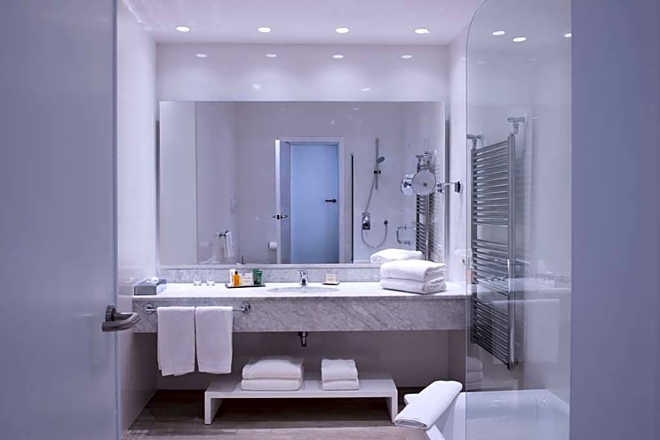 With a view of the Bay of Naples from its balcony and floor-to-ceiling windows, this very spacious triple room includes access to the Executive Club Lounge with a varied buffet. The private bathroom has a bath or walk-in shower, bathrobe and slippers.